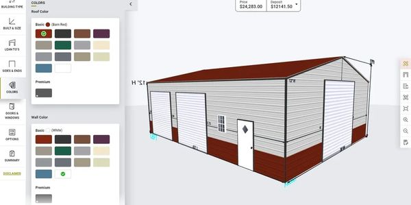 Use our interactive 3D barn design tool to build your ideal structure online. Choose from over 14 colors for walls, roof, and trim, and select from a variety of door sizes, windows, and custom features. Your design updates instantly in real-time, so you can see exactly how your building will look.
